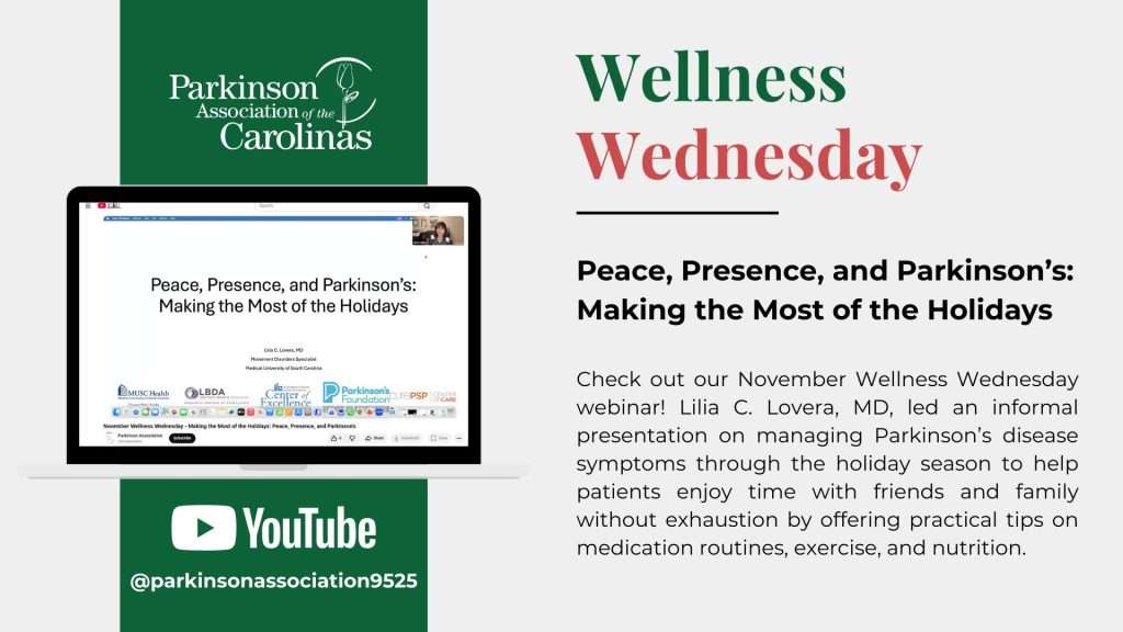 As we enter the holiday season, we are reminded of the power of connection, compassion, and community. For many, this time of year is filled with joy and celebration, but it can also bring unique challenges for those living with Parkinson’s disease and their care partners. At the Parkinson Association of the Carolinas (PAC), we are honored to walk alongside individuals and families throughout every season of their Parkinson’s journey.