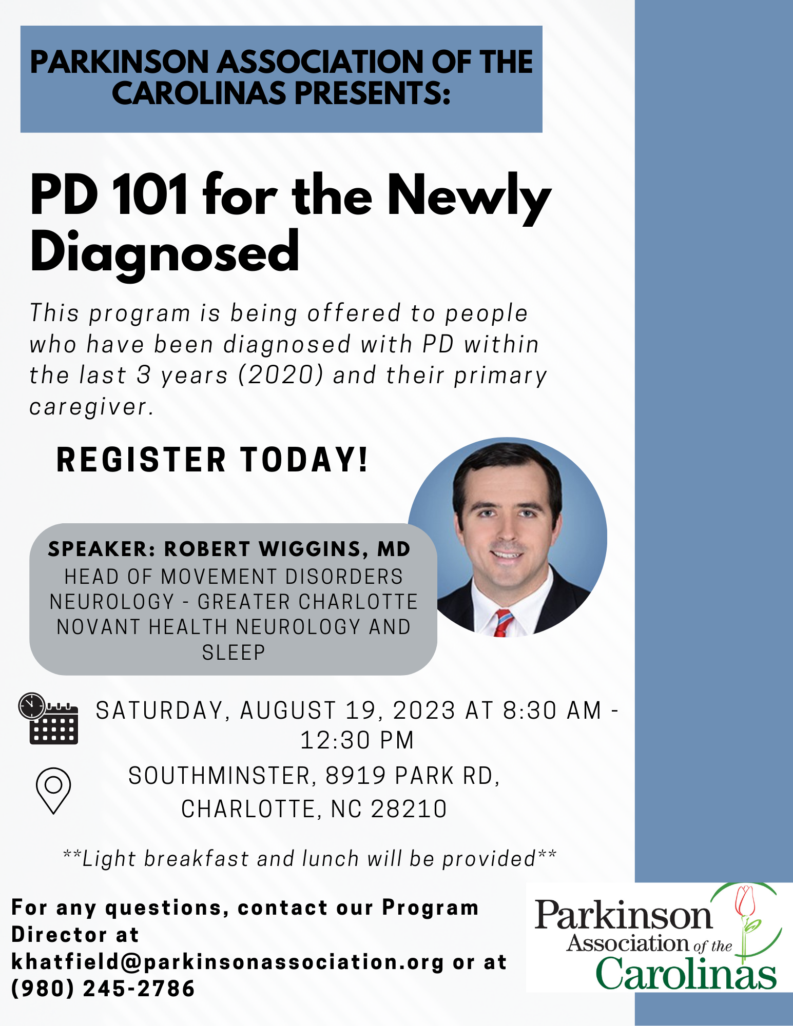 Join the Parkinson's Community Support Group in Hickory! This month, guest speaker, Jared Skinner, Ph.D., from Appalachian State University speaking to the group about current Parkinson's research studies.